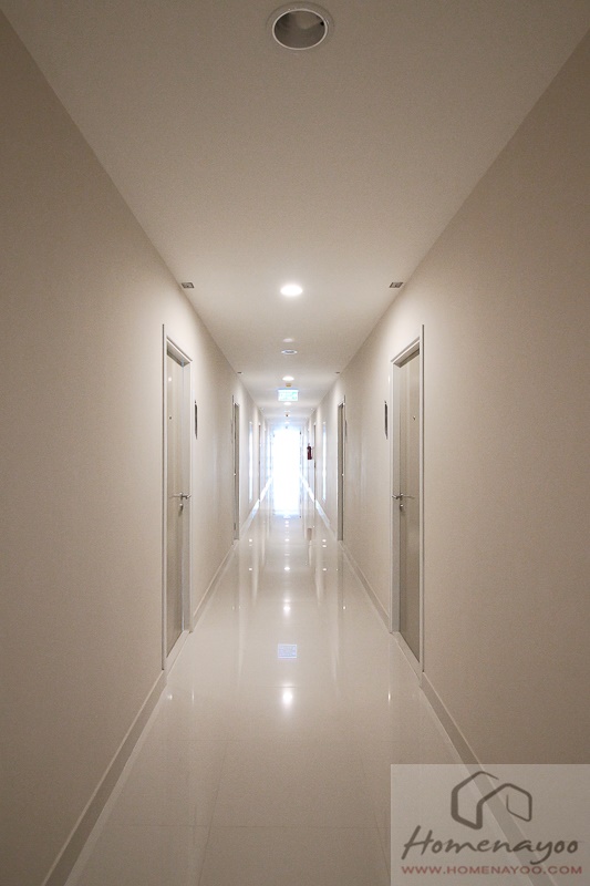 ภายในโถงทางเดินกว้างขวางและสว่างดีค่ะ เพราะมีช่องแสงอยู่ที่ปลายโถงทั้ง 2 ด้าน แถมยังติดไฟตามทางเดินมาให้ค่อนข้างถี่