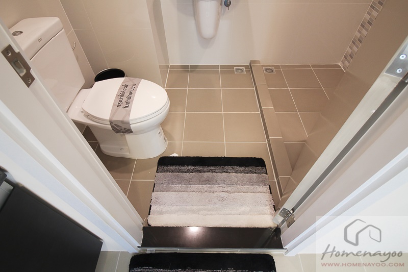 ที่ผนังทางโครงการจะให้ชุดฟักบัวอาบน้ำพร้อมราวปรับระดับและเครื่องทำน้ำอุ่นมาให้เราด้วยเลยค่ะ