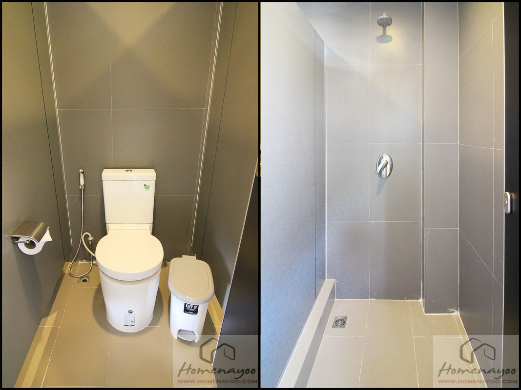 ส่วนโถสุขภัณฑ์เป็นแบบแยกชิ้น ระบบ Dual Flush ช่วยประหยัดน้ำ ระยะการติดตั้งกว้างขวางทำให้นั่งสบาย ผนังด้านหลังก่อ Lower Wall ให้ สามารถวางพวกแจกันดอกไม้, ของตกแต่ง หรือวางหนังสืออ่านเล่น สำหรับคนที่ชอบนั่งในห้องน้ำนานๆ