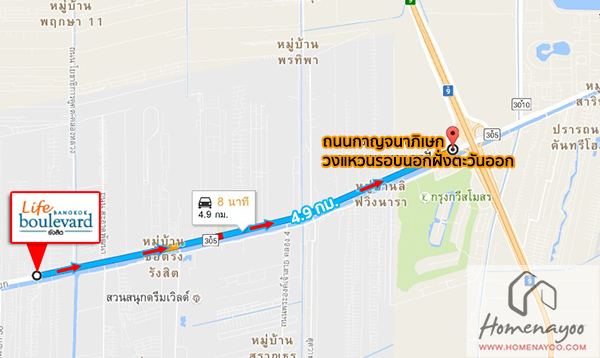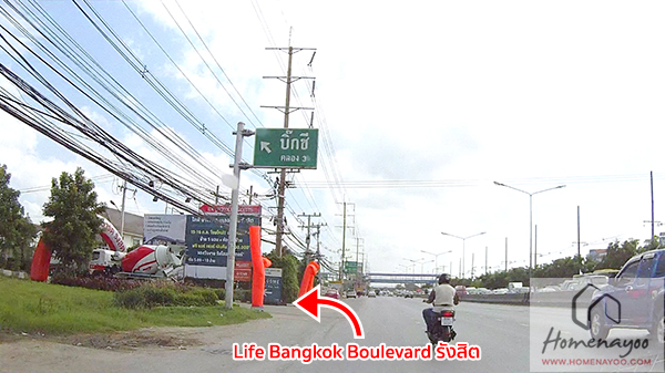ให้ตรงไปตามป้ายโครงการ Life Bangkok Boulevard รังสิต