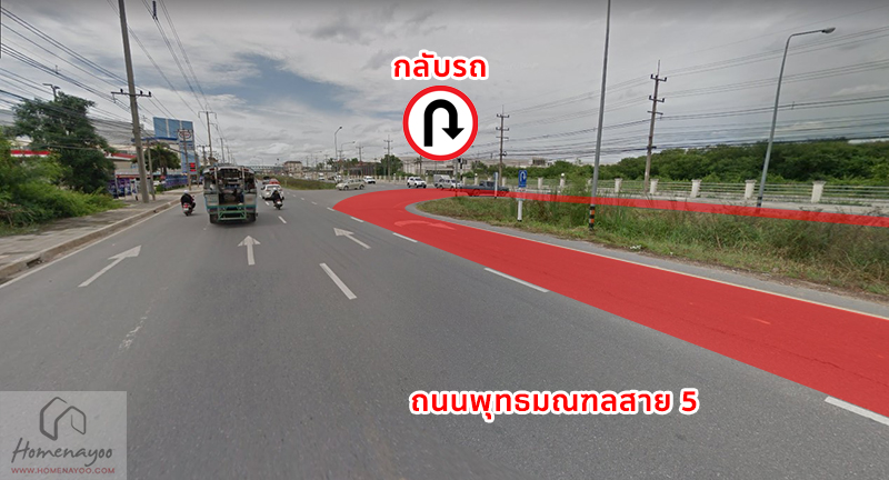 หลังจากนั้นให้ตรงตาม ถนนพุทธมณฑลสาย 5 ระยะทางอีก 1.40 กิโลเมตร ให้กลับรถ