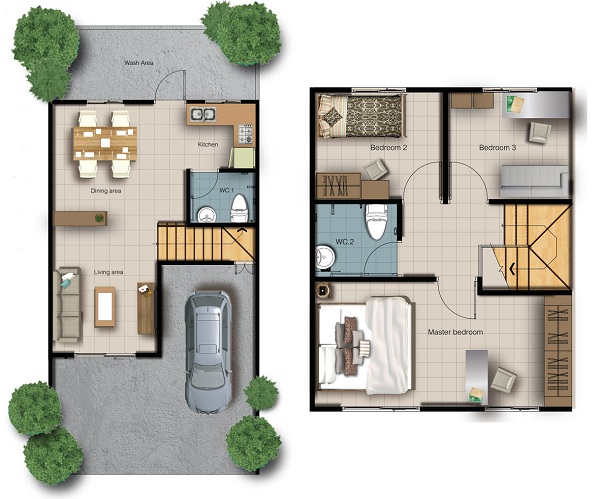 แปลนบ้านชั้น 1 | แปลนบ้านชั้น 2