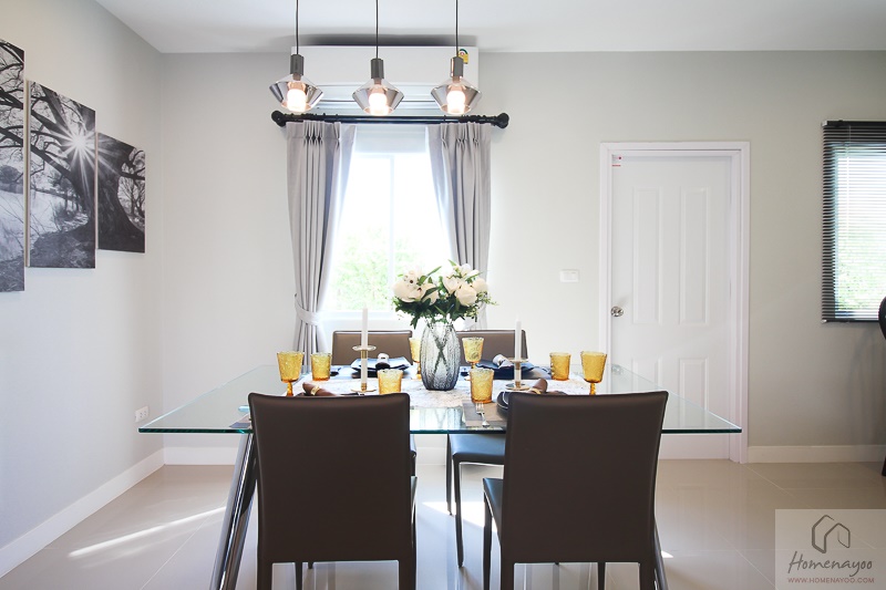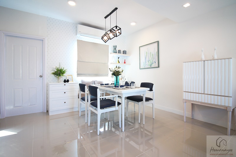 พื้นที่ห้องรับประทานอาหารก็มีขนาดกำลังดีค่ะ สำหรับโต๊ะอาหารสามารถวางได้ 4-6 ที่นั่ง