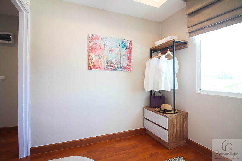 ส่วนพื้นที่อีกฝั่งก็สามารถวางตู้เสื้อผ้าได้อีก 1 ตู้ค่ะ