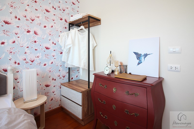 และผนังอีกฝั่งสามารถวาง ตู้เสื้อผ้า, ตู้เก็บของ, โต๊ะทำงาน หรือ โต๊ะเครื่องแป้ง ได้ลงตัว