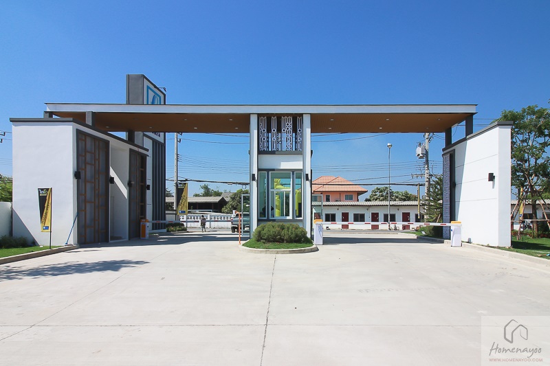 จากทางเข้าโครงการจะต้องผ่านจุดรักษาความปลอดภัย ทั้ง ป้อมรปภ., ระบบ Key Card Access และกล้อง CCTV พอผ่านจุดรักษาความปลอดภัยมาแล้วจะเชื่อมกับถนนหลักขนาดใหญ่ตัดเข้าไปภายในโครงการ และแบ่งเป็นถนนขนาด 12 เมตร กับ 8 เมตร ผ่านหน้าบ้านทุกหลัง โดยจะมีสวนสาธารณะและฟิตเนสอยู่บริเวณโซนหน้าโครงการ ใช้เป็นจุดพักสายตาเวลาที่กลับเข้ามาภายในโครงการค่ะ