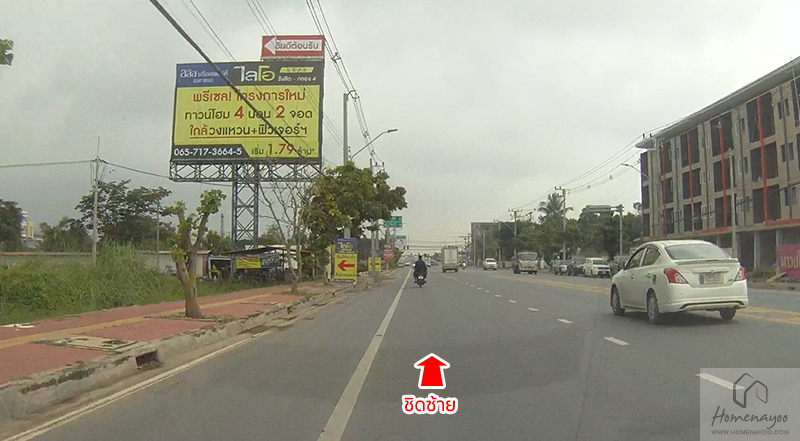ขับมาเพลินๆ แต่ไม่ต้องกลัวว่าจะเลยที่ตั้งโครงการ เนื่องจากว่าตรงบริเวณทางเข้าโครงการเขามีป้ายบิลบอร์ดขนาดใหญ่ ตั้งเด่นให้เราสังเกตเห็นได้ตั้งแต่ไกลๆ ชิดซ้ายได้เลยครับ