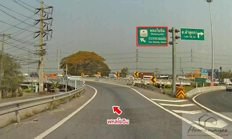 จากนั้นพอถึงทางแยกระหว่างพหลโยธินและลำลูกกา ให้เราเลี้ยวซ้ายตามป้ายพหลโยธิน