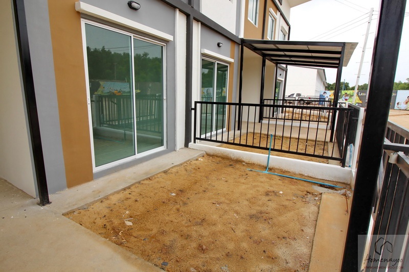 สวนหน้าบ้านเป็นพื้นดินทรายที่ขึ้นอยู่กับว่าเจ้าของบ้านจะใช้งานอย่างไร อาจจะปูเป็นสวนพื้นหญ้าจัดสวน หรือจะปูกระเบื้องก็แล้วแต่ความต้องการ