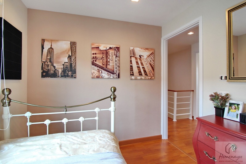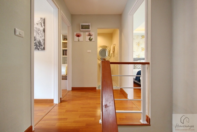 ขึ้นมาชั้นบน พื้นปูไม้ลามิเนตหนา 8 มม. ห้องโถงทำหน้าที่แจกจ่ายไปยัง 3 ห้องนอน และ 1 ห้องน้ำ โดยห้องนอนหลักอยู่ทางขวา มือ และห้องนอนรอง 2 ห้องอยู่ทางซ้ายมือ ส่วนห้องน้ำชั้นบนจะอยู่ตรงกลางเพื่อใช้งานร่วมกันทั้ง 3 ห้องนอน