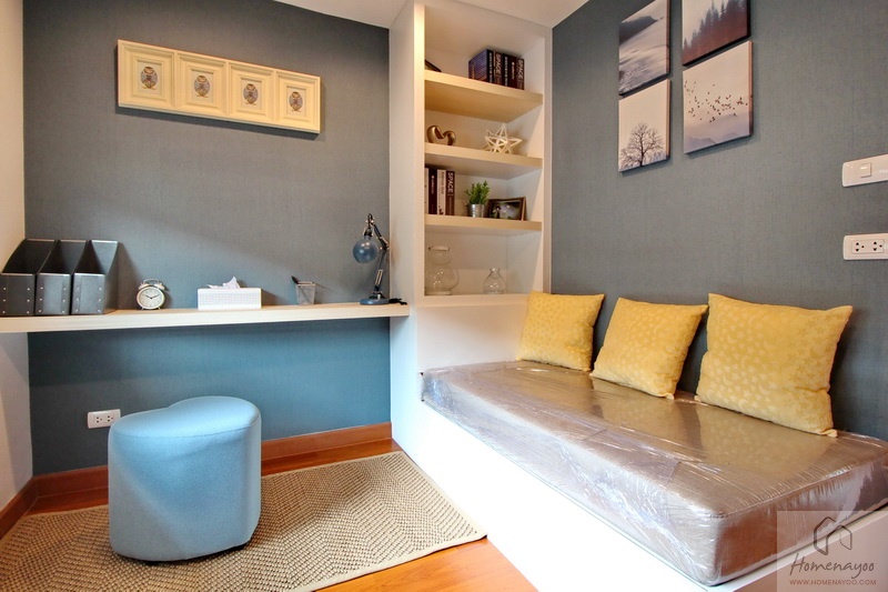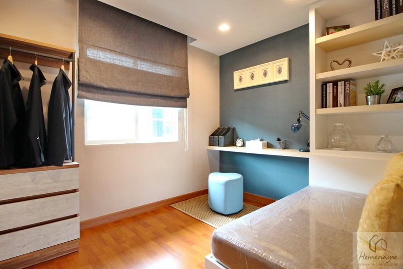 ขนาดห้องจะเล็กกว่าห้องนอน 2 เล็กน้อย แต่สามารถจัดวางเฟอร์นิเจอร์ได้ครบชุดเช่นกัน โดยที่ผนังห้องฝั่งทำ Built in พร้อมตู้เก็บของและโต๊ะทำงานมาให้ดูเป็นไอเดีย อันที่จริงจะทำเป็นห้องนอนวางเตียง 3.5 ฟุต ก็สามารถทำได้ครับ