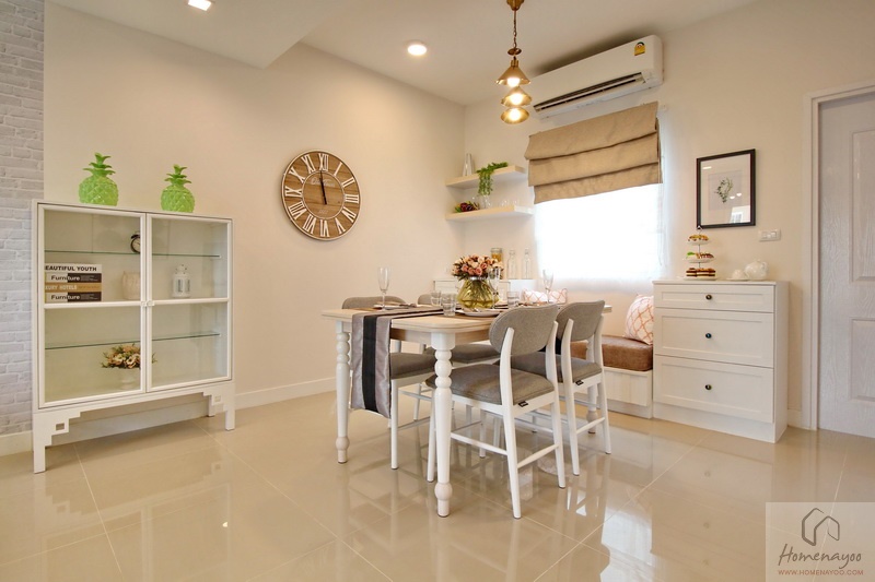 พื้นที่มุมทานอาหารขนาดกว้างขวาง สามารถจัดวางโต๊ะทานข้าวขนาดใหญ่ รองรับได้ 4-6 ที่นั่งได้สบาย ๆ ด้านหลังยังเหลือพื้นที่สำหรับบิวท์อินเป็นเคาน์เตอร์เพิ่มที่นั่ง และใช้สำหรับเก็บของเพิ่มเติมได้อีกด้วย
