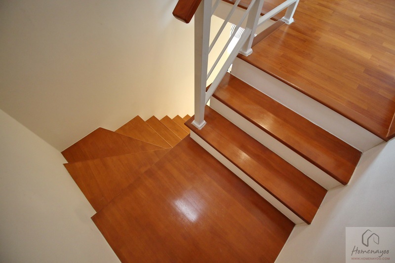 ชั้นบนปูด้วยพื้นลามิเนต 8 มม. ประกอบด้วย 3 ห้องนอน 1 ห้องน้ำ
