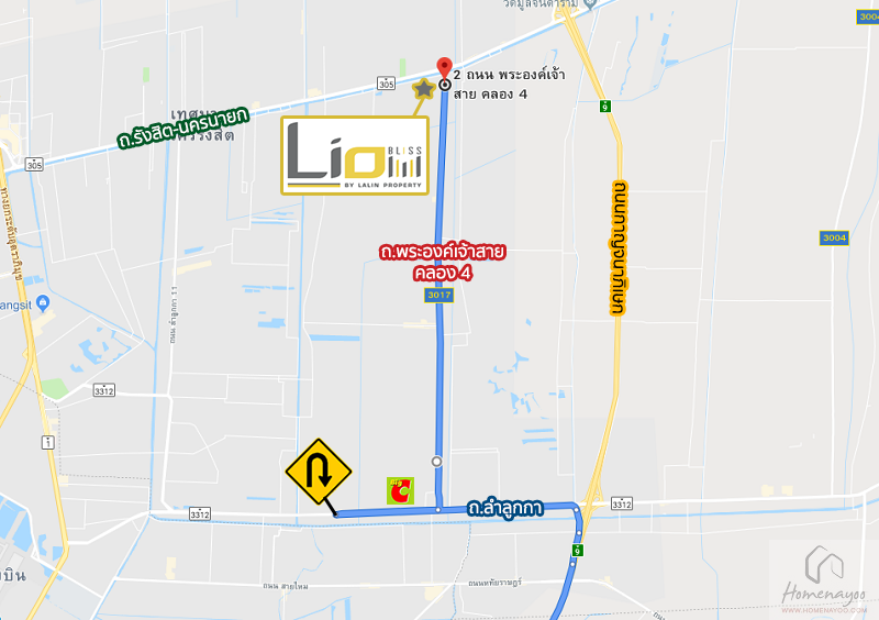 ทำเลที่ตั้งโครงการ : Lio Bliss รังสิต-คลอง 4 ตั้งอยู่บนถนนพระองค์เจ้าสาย คลอง 4 ฝั่งที่เกือบจะติดกับถนนรังสิต-นครนายก สามารถเข้าออกได้จาก 2 ทาง คือถนนรังสิต-นครนายก และถนนลำลูกกา ตัวโครงการอยู่ห่างจากถนนรังสิต-นครนายก เพียง 250 ส่วนฝั่งถนนลำลูกกาห่างจากโครงการ 7 กม. สำหรับถนนพระองค์เจ้าสาย คลอง 4 แต่เดิมนั้นเป็นถนนขนาด 2 เลนวิ่งสวนกัน แต่ปัจจุบันได้รับการพัฒนาขยายถนนเป็นขนาด 4 เลนและมีขนาดไหล่ทางที่กว้าง เพื่อใช้เป็นอีกหนึ่งเส้นทางในการเชื่อมถนนรังสิต-นครนายกเข้ากับถนนลำลูกกาได้อย่างสะดวก