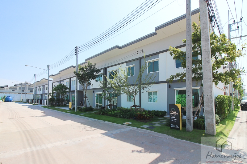 การออกแบบโครงการ และวัสดุ โครงการเป็นทาวน์โฮมสูงชั้นเดียว และ 2 ชั้น จำนวน 477 ยูนิต บนพื้นที่ 41 ไร่ สไตล์ Modern มีแบบบ้าน 2 แบบ ขนาด 85-105 ตร.ม. 2-3 ห้องนอน 1-2 ห้องน้ำ และ 1 ที่จอดรถ ฟังก์ชั่นการออกแบบก็เป็นแบบ Open plan ทั่วๆไป ตัวบ้านสามารถออกแบบได้กระชับและเรียบง่าย ใช้สอยได้สะดวก ติดอยู่ที่ว่า เฉลียงทางเข้าบ้านไม่ได้ยกระดับมาให้ พื้นทำเสมอกับพื้นลานจอดรถ ตัวบ้านยกระดับขึ้นมาเพียง 10 ซม. เวลาฝนตกหนักอาจทำให้น้ำเข้าบ้านได้ ส่วนห้องน้ำของทาวน์โฮม 2 ชั้นจะไม่มีหน้าต่างระบายอากาศมาให้ ต้องติดพัดลมดูดอากาศเพิ่มเติมเอา ทาวน์โฮมชั้นเดียวจะต้องต่อเติมครัวเอาเองทั้งหมด ส่วนทาวน์โฮมสูง 2 ชั้น บริเวณห้องครัวภายในมีพื้นที่ค่อนข้างเล็ก สามารถทำเป็นแพนทรี่ได้ แต่ครัวไทยจะต้องไปต่อเติมเพิ่มในบริเวณของลานซักล้างค่ะ