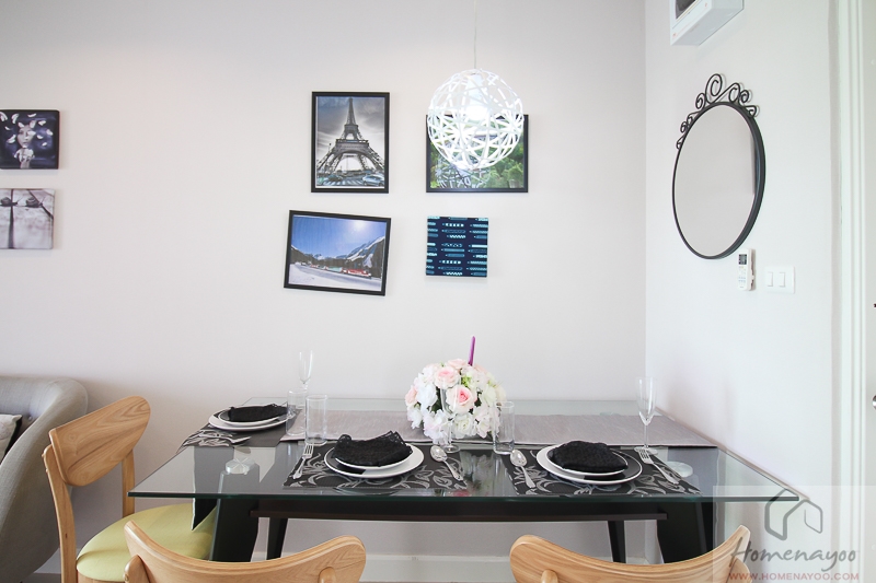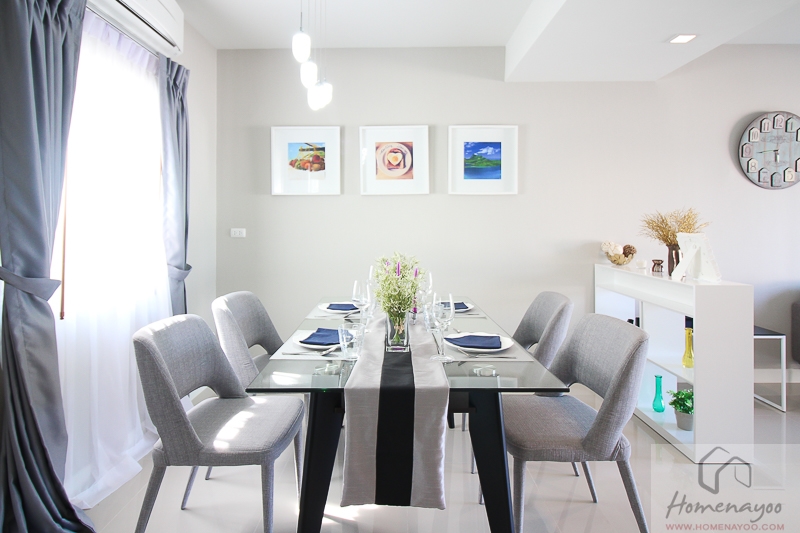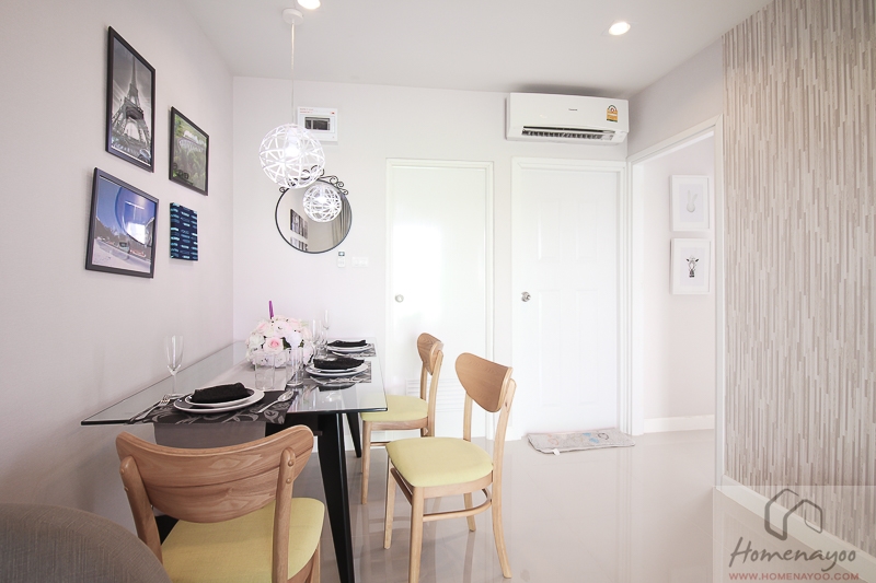 สำหรับโต๊ะอาหารสามารถวางได้ขนาด 4 ที่นั่งพอดี จะต่อหัวท้ายเพิ่มเป็น 6 ที่นั่งในวันที่มีแขกก็ยังรองรับไหว