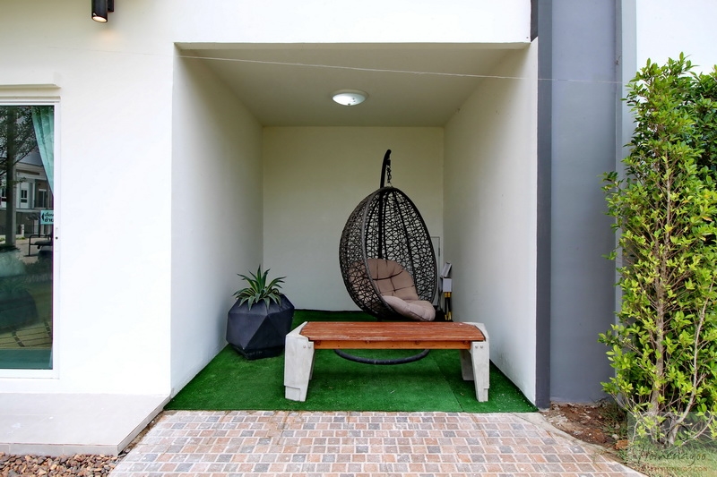 การแต่งสวนของโครงการ ปูพื้นด้วยหญ้าจริง ลงไม้ใหญ่ยืนต้นเป็นจุดให้ร่มเงา แต่ด้วยความที่โครงการถือว่าเป็นโครงการใหม่ ต้นไม้เพิ่งนำมาลงอาจจะดูว่าใบไม้ยังเบาบางไปหน่อย แต่ให้เวลาสักระยะนึงจะสามารถแผ่กิ่งก้านสาขาให้ความร่มเย็นแก่ลูกบ้านได้จริงครับ