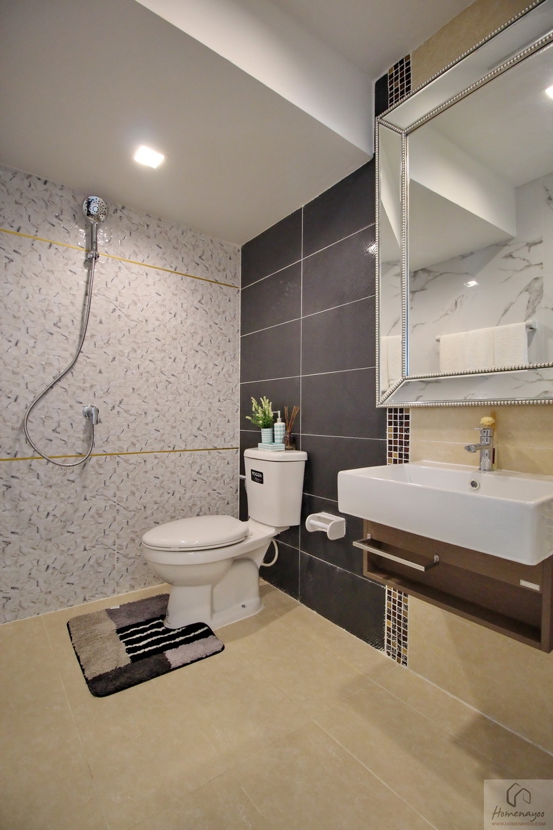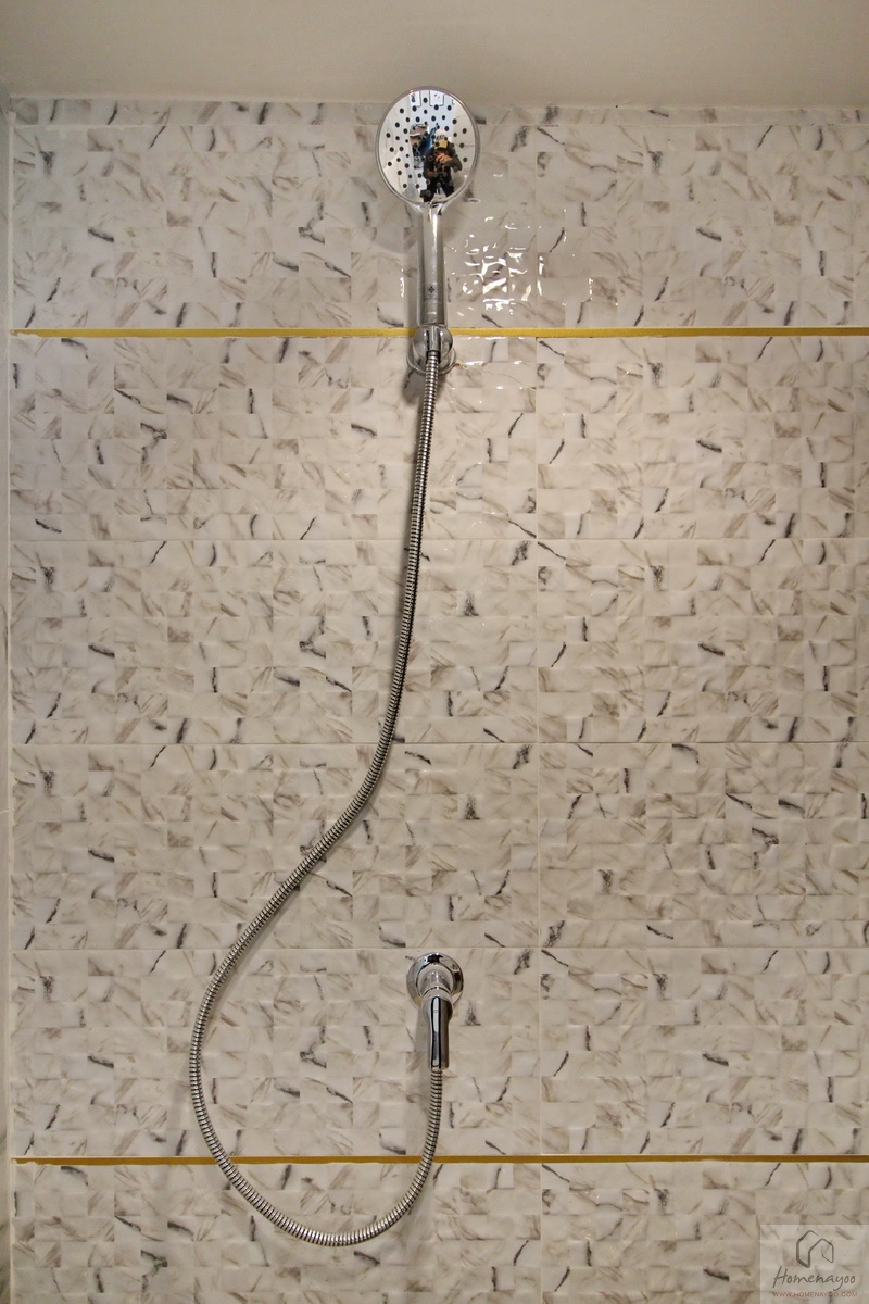 รูปแบบ Layout และการใช้วัสดุต่างๆ เหมือนกับแบบบ้านที่แล้วทุกประการ สุขภัณฑ์ใช้ของ Mogen มุมอาบน้ำใช้ฝักบัวของ Cotto