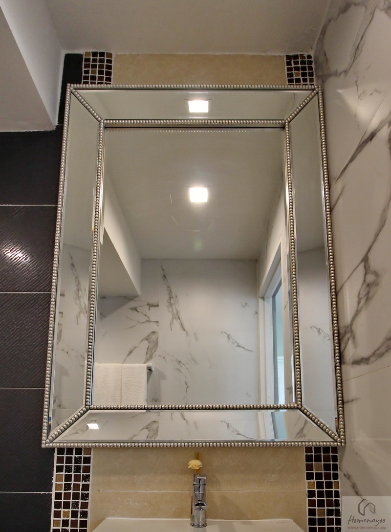 เหนืออ่างล้างหน้าติดตั้งบานกระจกเงาให้