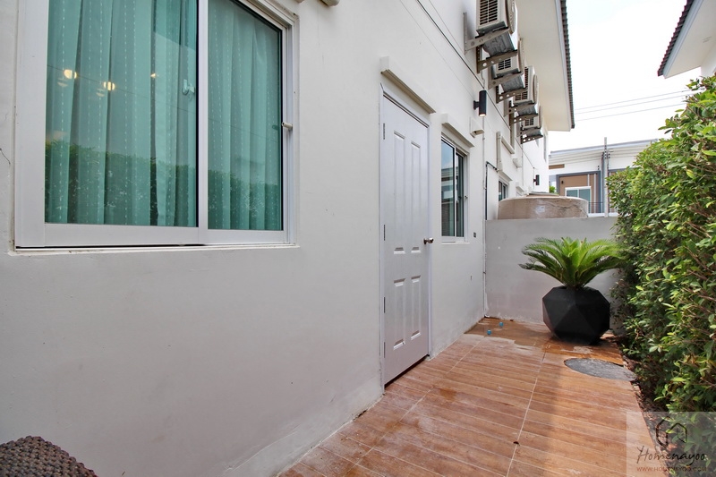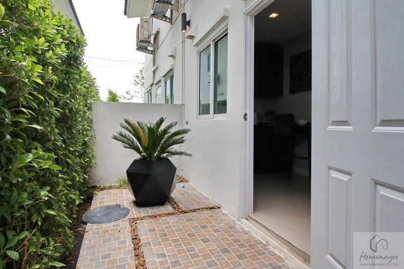 ริมทางเดินหน้าบ้านมีการจัดสวนด้วยไม้พุ่มเล็กๆ