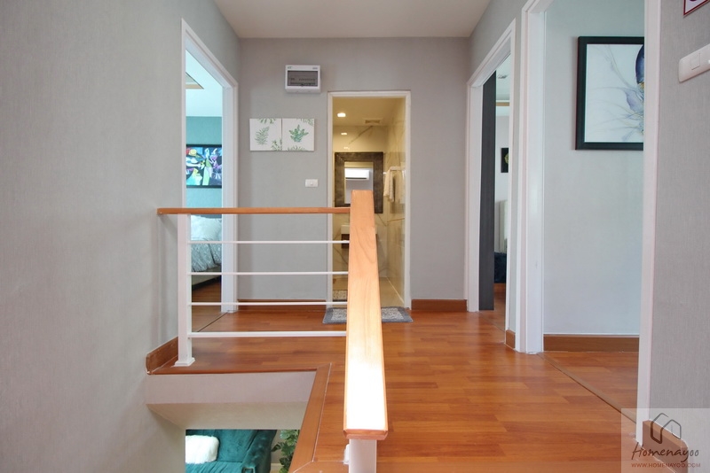ห้องโถงชั้นบนทำหน้าที่เป็นตัวกระจายไปยังห้องต่างๆ ประกอบด้วย 3 ห้องนอนและ 1 ห้องน้ำ พื้นชั้นบนปูด้วยลามิเนตหนา 8 มม.