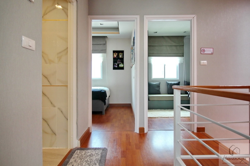ที่ชั้นบนผมขอเริ่มจากห้องนอนรอง 2 ห้องที่อยู่ตำแหน่งหลังบ้าน โดยไปดูห้องทางขวาที่อยู่ใกล้บันไดก่อนครับ