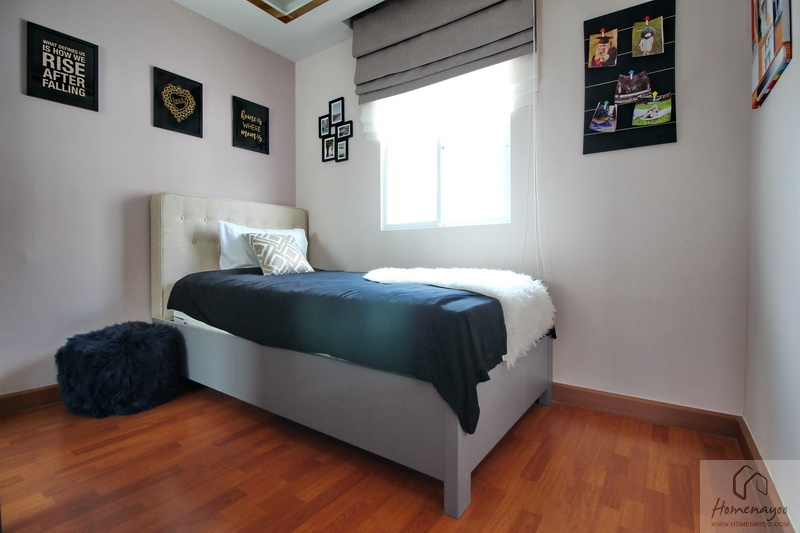 ห้องนี้ทางโครงการตกแต่งเป็นห้องนอน เพื่อให้ดูความแตกต่างจากแบบบ้านที่แล้วที่ทำห้องนี้เป็นห้องนั่งเล่นอเนกประสงค์ โดยวางเตียงขนาด 3.5 ฟุต ให้ดูเป็นตัวอย่าง