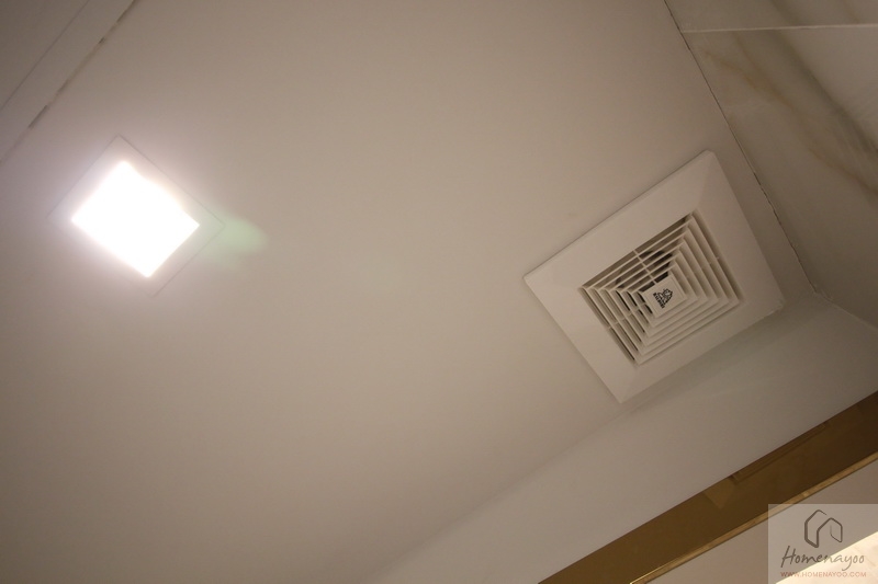 ภายในห้องน้ำติดตั้งพัดลมดูดกาศ และโคมไฟแบบดาวน์ไลท์
