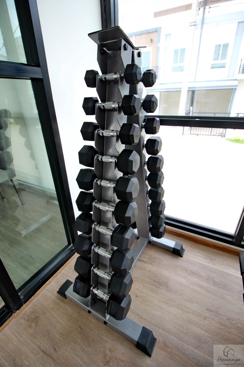 เสริมด้วยดัมเบลหลากหลายขนาด เลือกใช้ได้ตามความแข็งแรงของกล้ามเนื้อ