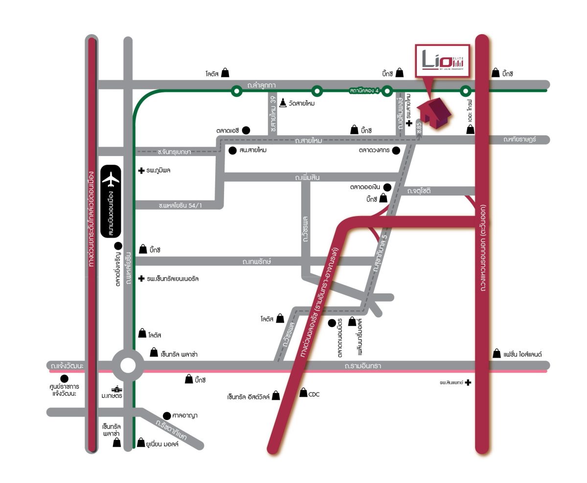 จากแยกตลาดวงศกร ให้เข้าซอยสายไหม 85 ไปอีกประมาณ 500 เมตร ก็จะถึงที่ตั้งโครงการ ไลโอ อีลิท วัชรพล-สายไหม