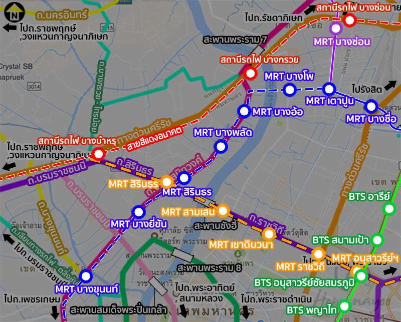และที่แยกบางพลัดบนถนนสิรินธร ในอนาคตจะเป็นสถานี Interchange กับ MRT สายสีส้ม สามารถวิ่งไปเปลี่ยนสายไป BTS สายสีเขียวได้ที่อนุสาวรีย์ชัยสมรภูมิ ในอนาคตคนไม่ใช้รถจะมีความสะดวกสบายสูง เชื่อมต่อไปจุดสำคัญๆและตัวเมืองชั้นในได้ด้วยการนั่งรถไฟฟ้าไปไม่กี่สถานีเท่านั้น