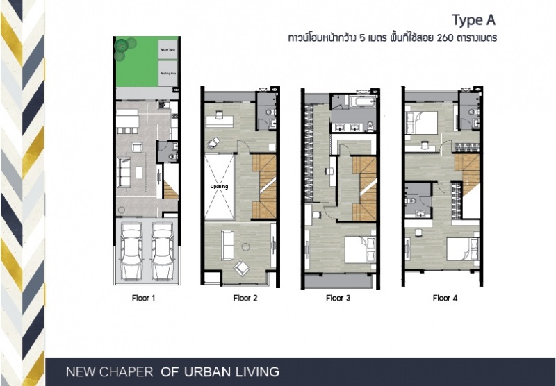 | พื้นที่ใช้สอย | เริ่มต้น 240-260 ตร.ม. |