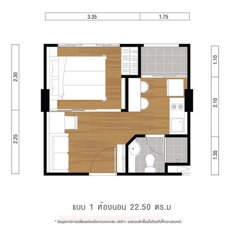 One Bedroom ขนาด 22.50 ตร.ม.