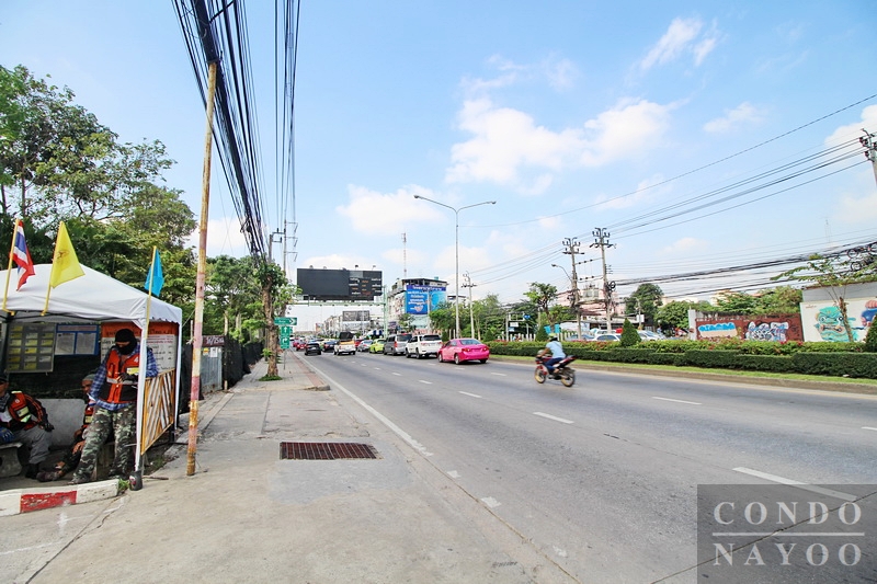 ถนนหน้าโครงการคือถนนเสรีไทย เป็นถนนใหญ่ 6 เลนมีเกาะกลางถนนที่มีไม้พุ่มทำให้ด้านหน้าดูร่มรื่น ตรงข้ามเป็น Lumpini Condotown นิด้า-เสรีไทย 1 บ้านพักอาศัยและร้านค้า