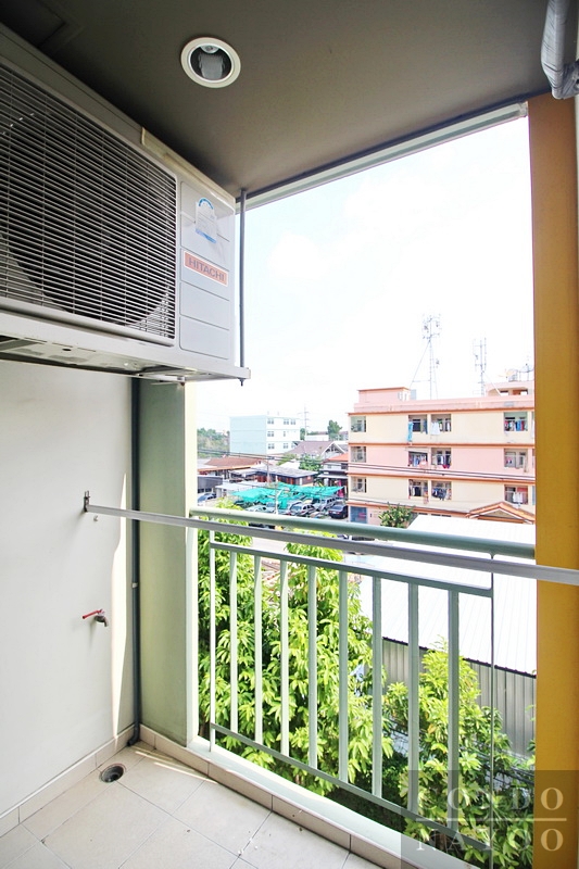 ห้องครัวอยู่ติดกับห้องน้ำและระเบียง ประตูระเบียงเป็นประตูกระจกบานเลื่อน ทำให้มีแสงธรรมชาติส่องเข้ามาในห้องและเมื่อเปิดประตูก็ช่วยถ่ายเทอากาศได้ดี พื้นที่ระเบียงกว้างพอให้วางเครื่องซักผ้าและตากผ้าได้สะดวก