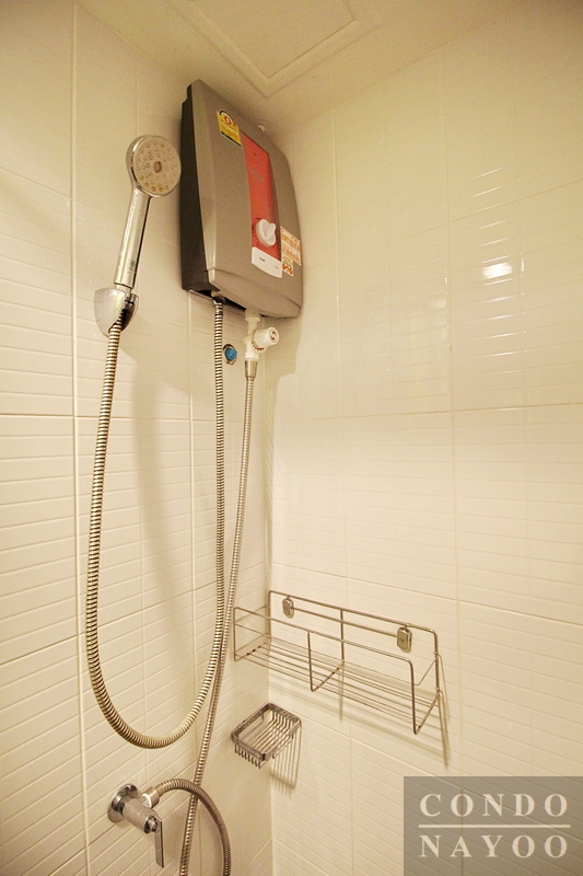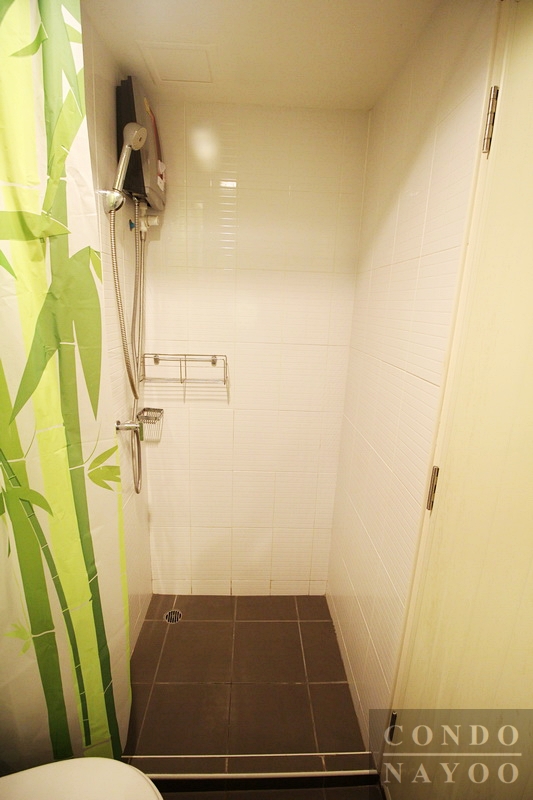 ด้านนี้จะเป็นส่วนอาบน้ำ ห้องน้ำไม่ได้แยกส่วนแห้งและเปียกชัดเจนนัก แต่สามารถติดตั้งฉากกั้นอาบน้ำได้ค่ะ