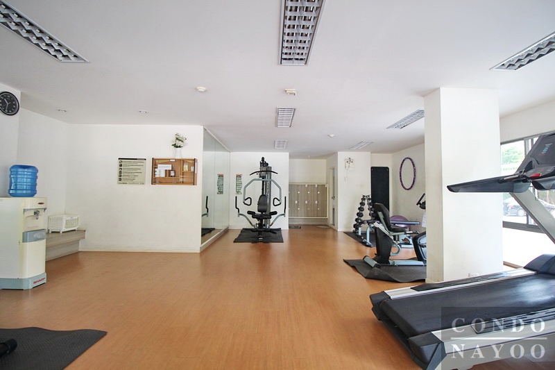 ใต้อาคาร A มีห้องฟิตเนส ภายในห้องมีเครื่องเล่นหลากหลายและห้องน้ำแยกชาย-หญิง