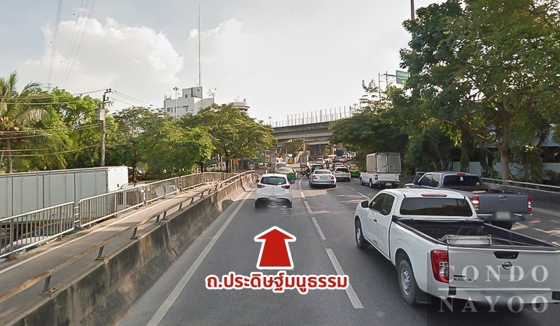 ลงสู่ ถ.ประดิษฐ์มนูธรรมค่ะ จริงๆ แล้วถ้าเราวิ่งต่อไปบนทางด่วน ทางพิเศษฉลองรัชจะเชื่อมต่อกับทางพิเศษศรีรัช เราสามารถลงตรงด่านพระราม 9 ก็ได้ จะเป็นจุดที่ใกล้กับโครงการมากกว่าเล็กน้อย ช่วงเลี่ยงการจราจรบางช่วงได้ แต่ต้องเสียค่าทางด่วนอีก 1 ต่อนะ