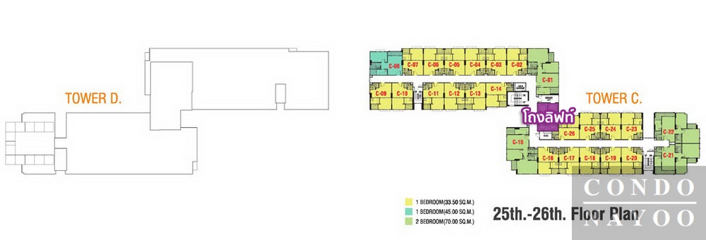 ชั้นที่ 25-26 จะเป็นส่วนของอาคาร C ค่ะ มี 26 ยูนิตเท่าเดิม