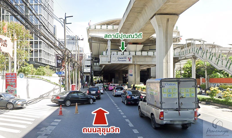 กลับมาที่บริเวณด้านหน้าโครงการหันไปทางฝั่งซ้ายมุ่งหน้าออกถนนสุขุมวิทกัน