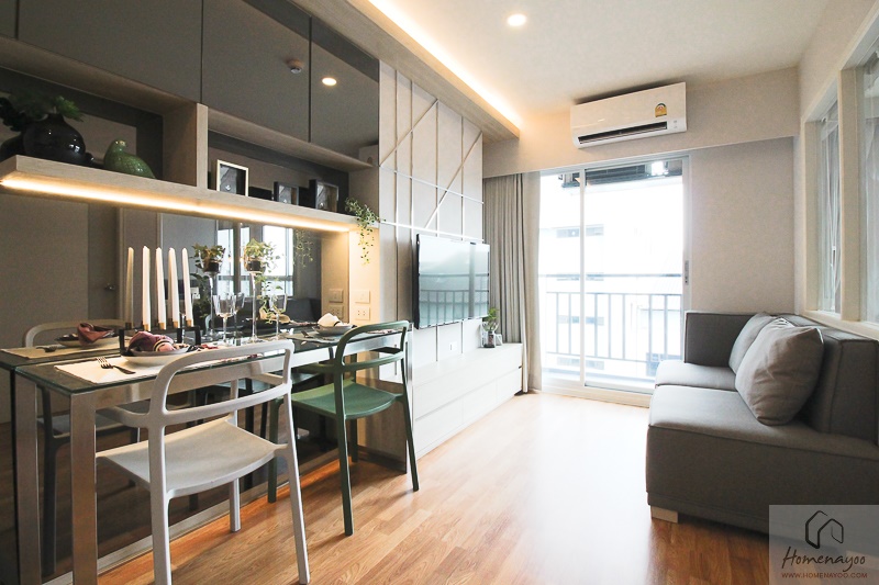 เราจะพาไปชมห้องตัวอย่างกัน 2 แบบค่ะ แบบแรกคือห้อง Studio ขนาด 24 ตร.ม. และแบบที่ 2 คือห้อง 1 Bedroom ขนาด 28 ตร.ม.