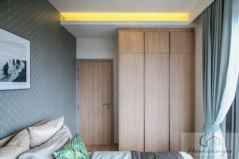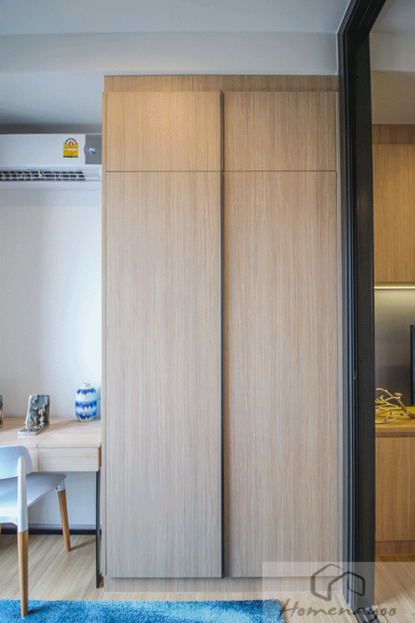 เข้าห้องมาติดกับประตู จะมีตู้เก็บของมาให้เป็นบานเปิด 4 บาน ซ้ายมือเป็นห้องน้ำ