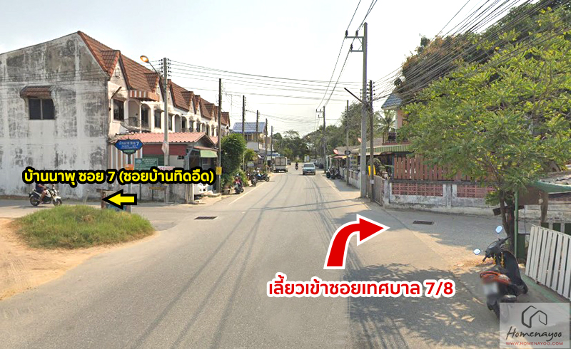 เลี้ยวขวาเข้าซอยทางไป ซ.เทศบาล 7/8 ซึ่งลัดไปออกซ.เทศบาล 7 (ซ.สุขาภิบาล 7) ได้ค่ะ ซอยนี้จะอยู่ตรงข้ามบ้านนาพุ ซ.7 (ซ.บ้านทิดอืด)