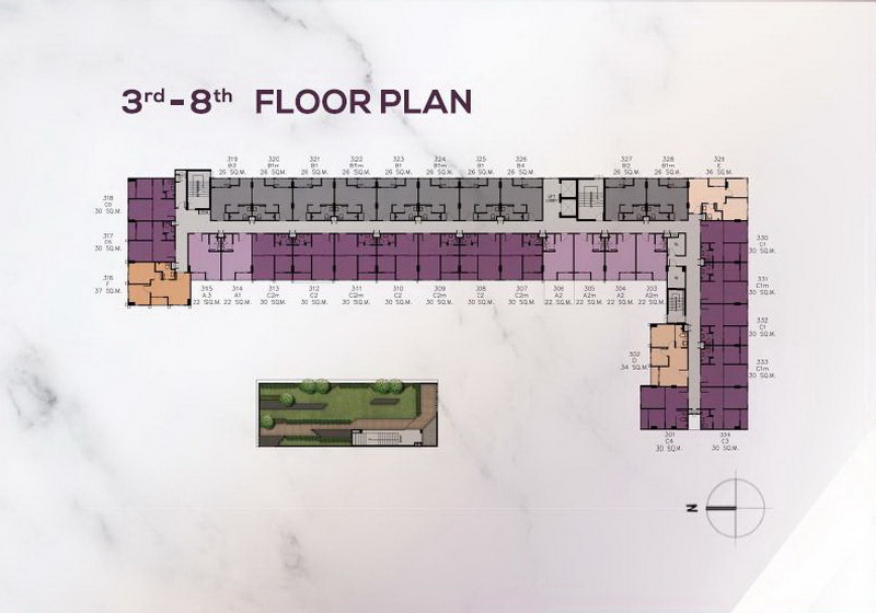 ชั้น 3 – 8 เป็นชั้นพักอาศัย ส่วนชั้น 3 ของอาคาร Clubhouse จะเป็น Roof Top Garden ค่ะ