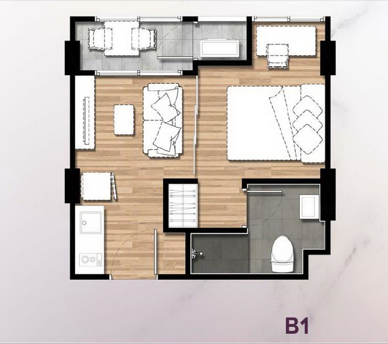 B1 : 1 Bedroom ขนาดพื้นที่ใช้สอย 26 ตร.ม.