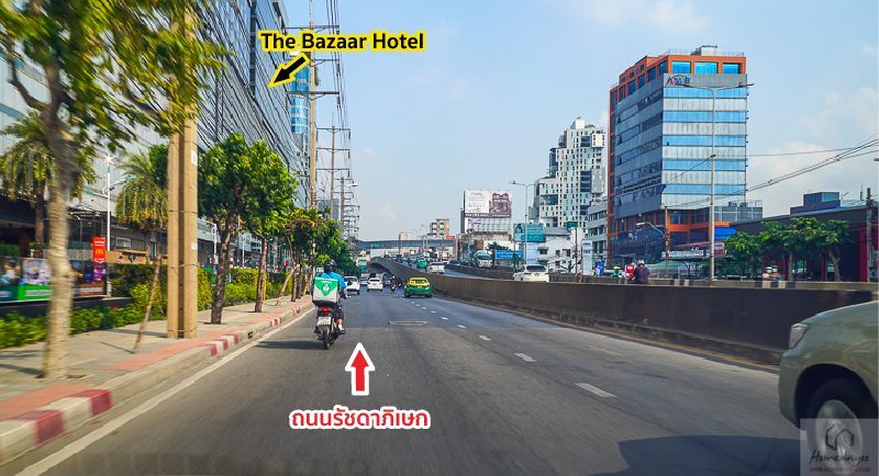 เริ่มจากที่ถนนรัชดาภิเษกมุ่งหน้าไปทางลาดพร้าว ซ้ายมือเป็น Fortune Town ขวามือเป็น Central พระราม 9