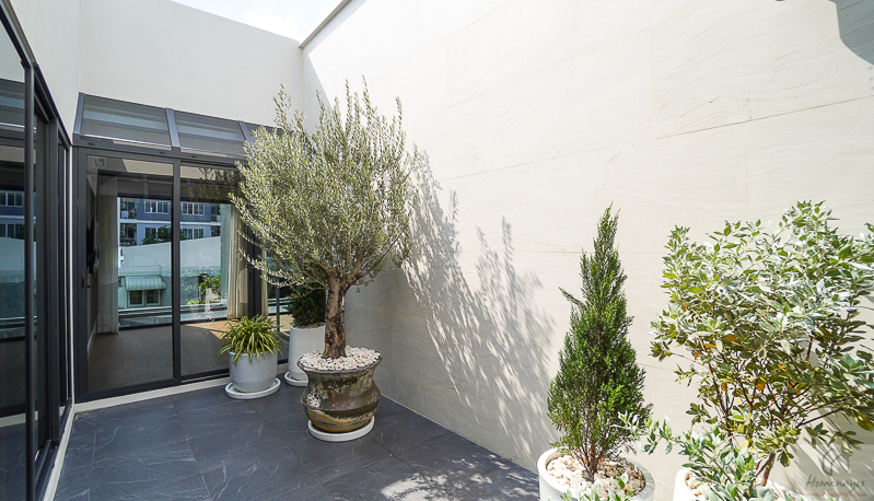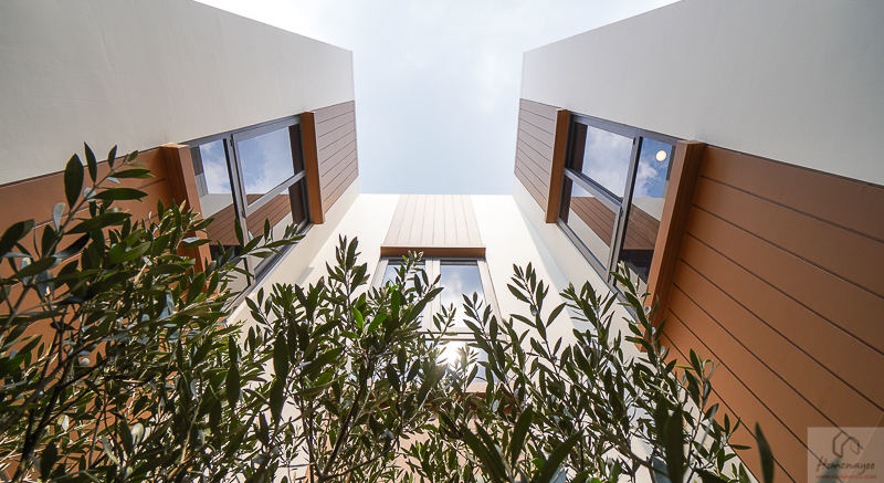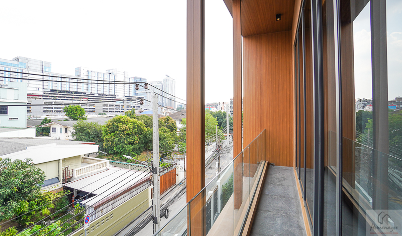 ตรงระเบียงมีพื้นที่พอสมควร จัดเป็นพื้นที่สีเขียววางกระถางต้นไม้ตกแต่งได้ เงยหน้ามองเชื่อมต่อไปถึงชั้น 3 ได้