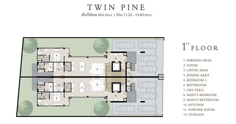 บ้านตัวอย่าง แบบบ้าน Twin Pine พื้นที่ใช้สอย 454 ตร.ม.