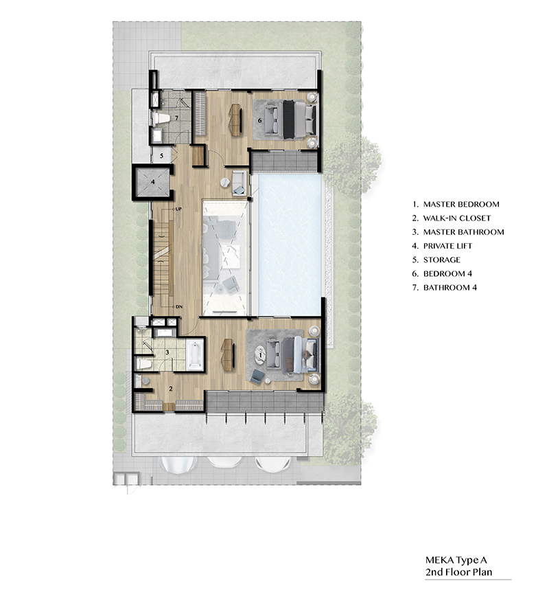ส่วนในการออกแบบจะเน้นช่องแสงขนาดใหญ่ ทำให้บ้านโปร่งโล่ง และพื้นที่คอร์ทกลางบ้านที่ทำให้การอยู่อาศัยไม่อึดอัด ตัวบ้านระบายอากาศได้ดี และมี Option ให้เลือกได้ว่าจะเลือกเป็นหลังที่มีสวน หรือสระว่ายน้ำ โดยที่ตัวสระว่ายน้ำก็ยังใส่เทคโนโลยีที่ใช้งานได้จริงอย่างอ่าง Jacuzzi และ Counter Current ว่ายออกกำลังกายได้ ไม่ใช่แค่สระตกแต่งในบ้าน