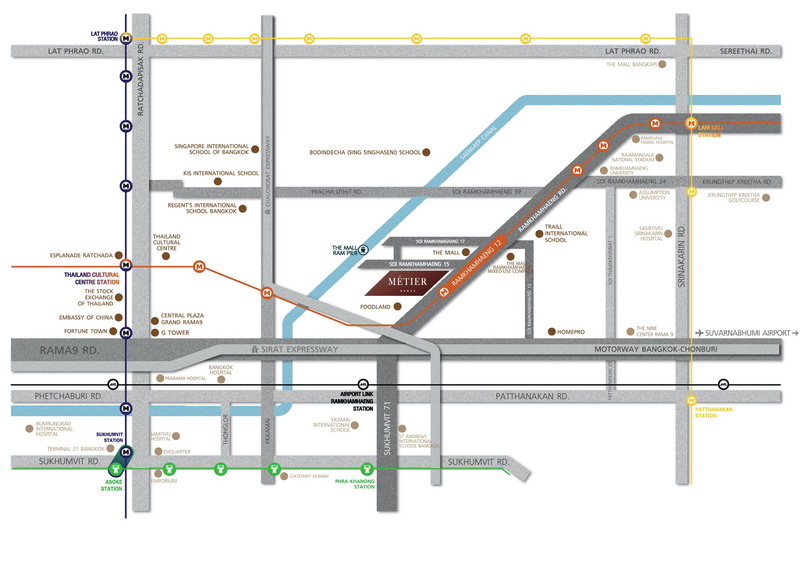 MÉTIER พระราม 9 โฮมออฟฟิศหรูใจกลางทำเลย่านพระราม 9 ศูนย์กลางธุรกิจของกรุงเทพ Central Business District (CBD) ตั้งอยู่ภายในซอยรามคำแหง 15 แขวงหัวหมาก เขตบางกะปิ กทม. ใกล้ทุกการเชื่อมต่อ เพียง 1 ก้าว ถึง The Mall รามคำแหง ใกล้สถานีรถไฟฟ้า MRT เพียง 150 ม.